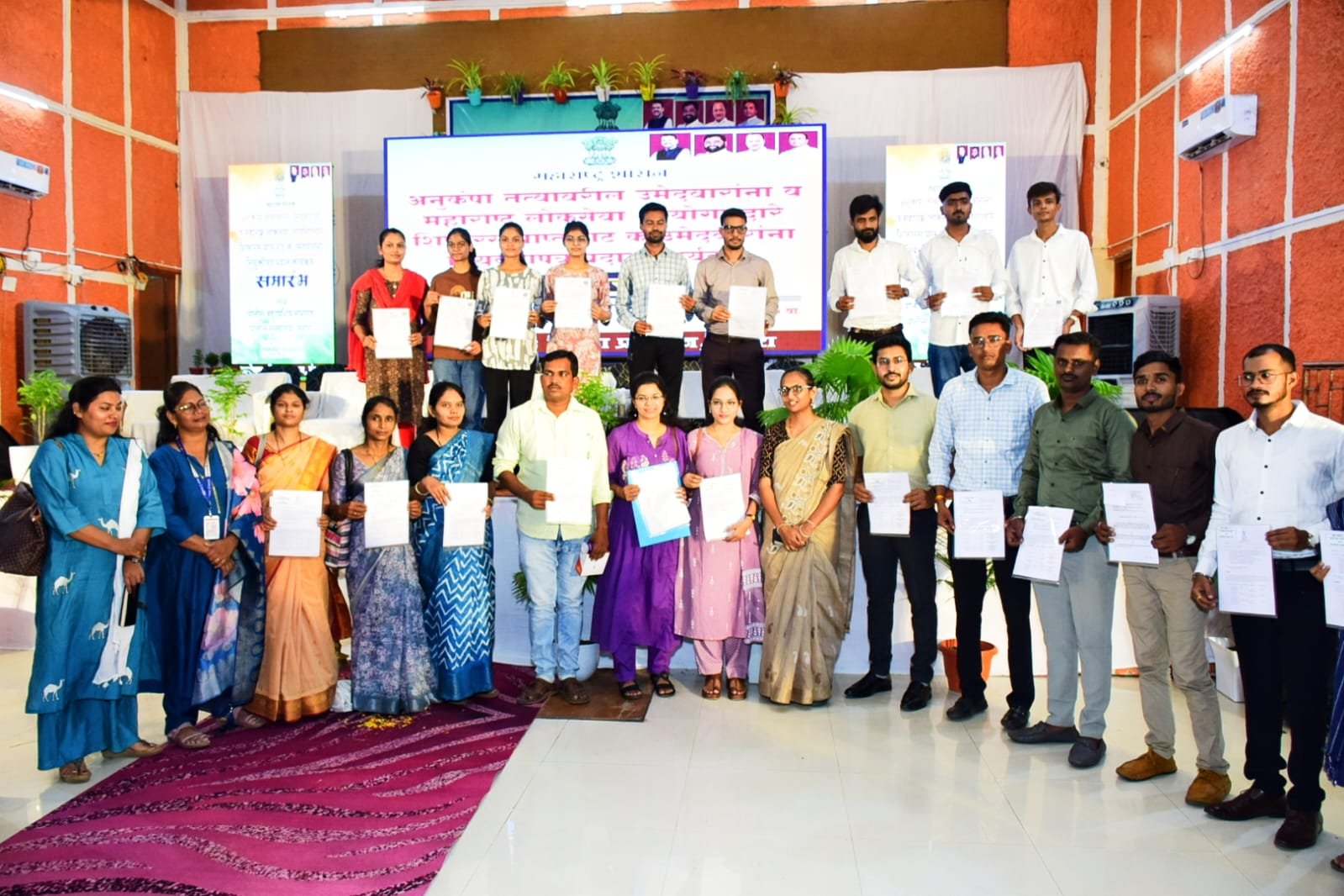 शासनाच्या अनुकंपा नियुक्ती योजनेअंतर्गत पात्र वारसांना शासकीय सेवेत सामावून घेण्याची प्रक्रिया पूर्ण होत भंडारा जिल्ह्यातील 165 अनुकंपा धारक यांच्यासह जिल्हा परिषदेमधील सरळ सेवेने नियुक्त झालेल्या उमेदवारांना नियुक्तीपत्रांचे वाटप करण्यात आले. या निमित्ताने आज पोलीस मुख्यालयातील पोलीस बहुद्देशीय सभागृहात भव्य कार्यक्रम संपन्न झाला.